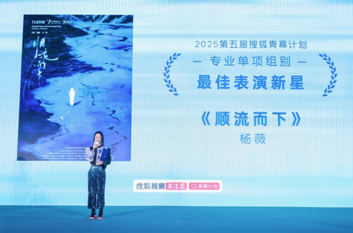 在12月10日于北京圆满落幕的第五届搜狐青幕计划荣誉盛典上,杨薇荣获“最佳表演新星”奖。评委会对其在《顺流而下》中饰演的汶川地震失女母亲一角给予高度评价,认为她以“内敛而精准的表演,传递出深沉的情感力量”。该奖项由中央戏剧学院表演系教师、著名表演指导刘天池与青年演员姜川共同颁发,彰显了学界与业界对其演技的双重肯定。